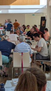 Während vormittags noch viele Menschen das sonnige Wetter im Freien genossen, füllte sich die Veranstaltung ab dem Nachmittag. Gegen 14.30 Uhr waren alle Tische belegt. Viele Familien spielten gemeinsam mit ihren Kindern. Besonders gefragt waren neben Kinderspielen auch Herbstneuheiten wie „Am Goldenen Fluss“, „Tea Garden“ oder „Parks“ sowie „Kauri“, das auf der Empfehlungsliste „Kennerspiel des Jahres 2025“ steht. Ebenfalls beliebt war „Bomb Busters“, das Spiel des Jahres 2025.